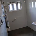 Bathroom facilities also include a walk-in shower, a separate toilet, and a sink. A hair dryer are included for added comfort.